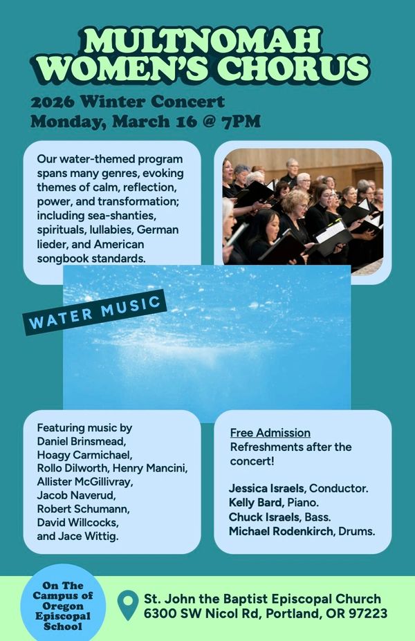 Our Winter 2026 concert is on Monday, March 16 at 7pm! Located at The Episcopal Parish of St. John the Baptist Church on the campus of Oregon Episcopal School. Concert is free; reception to follow.